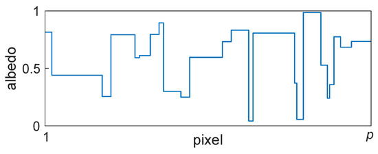 is the concatenation of m different shading matrices defined by Equation (12) with k = , and is the concatenation of m identical albedo matrices R defined by Equation (11). Each matrix in Equation (13) has dimension . This equation is a generalisation of Equation (6).