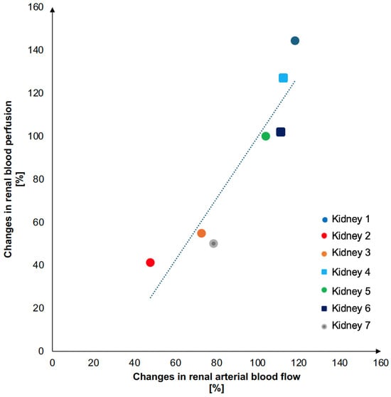 Chronic or acute impact on kidney function are very common conditions. Imaging techniques such as ultrasound and computed tomography mainly provide anatomical information [,]. Quantitative data on renal blood supply in terms of renal artery blood flow (RABF) or renal blood perfusion (RBP) of the parenchyma remain complicated to measure. However, these parameters are of increasing interest as they are determined by intrarenal vascular resistance and influence kidney oxygenation.