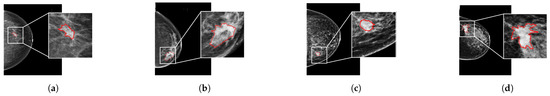 Figure 4. Examples of breast tumor segmentations for (a) luminal A, (b) luminal B, (c) TNBC, and (d) HER2.