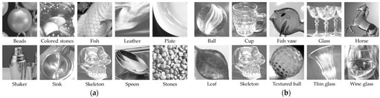 List of image content used as experimental stimuli. (a) Glossiness. (b) Transparency.