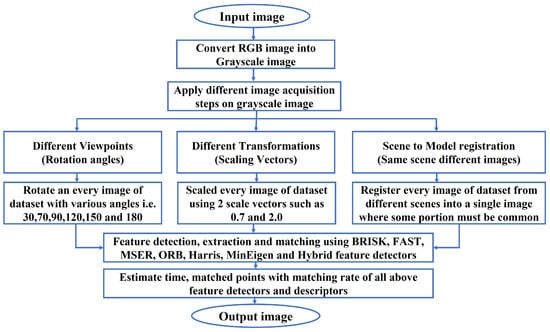This paper proposes a novel algorithm resulting from a combination of the BRISK and FAST feature-detection algorithms. The proposed methodology is outlined in the flow diagram shown in Figure 1. Detailed explanations of all the feature detectors and descriptors used in this study are provided in the following section.