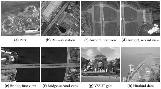 The experiments were conducted using eight different images from the AID (Aerial Image Dataset) database, representing a variety of scenes including parks, railway stations, airports, bridges, a university gate (VSSUT gate), and a large dam (Hirakud dam) []. These images were chosen to cover a broad spectrum of typical scenarios in remote sensing and feature-detection tasks.