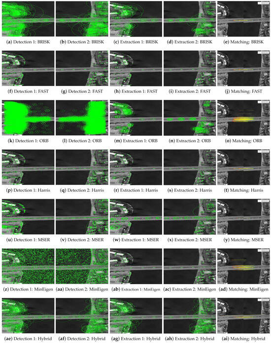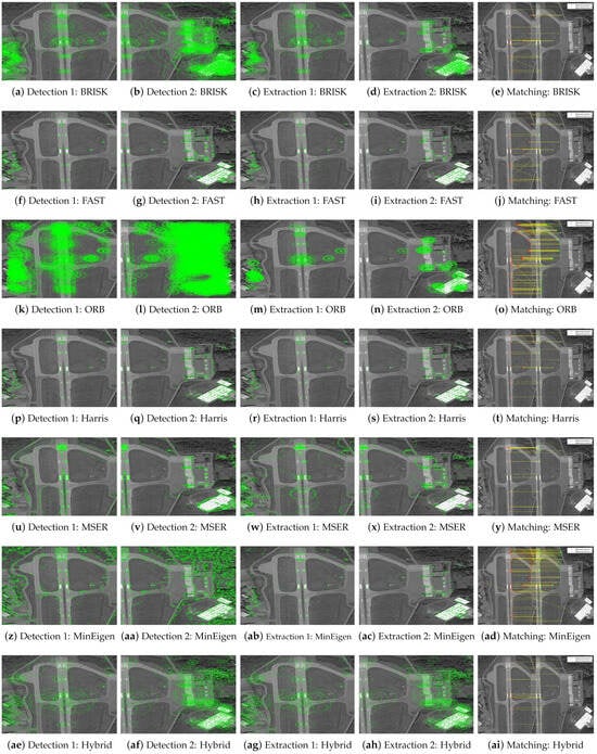 The experimental results demonstrate a significant reduction in time complexity alongside improvements in the detection and matching of keypoints. These improvements are quantified through detailed performance metrics, underlining the hybrid detector’s robustness across varied operational scenarios. This robustness ensures that the hybrid approach is well-suited to the dynamic and often unpredictable environments typical of remote-sensing applications, which demand high levels of adaptability and precision.