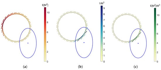 The distance between the points and the shape to be reconstructed is replaced with the expected distance between the distributions and the shape. The distance metric does not need to be the Euclidean distance and is instead substituted by the Mahalanobis distance to incorporate anisotropic uncertainty, i.e., []. To the best knowledge of the authors, the application of the Mahalanobis distance for geometry fitting is rare. Our approach deviates from an existing study in the approach to reduce bias and by evaluating the entire geometry for every distribution rather than the Mahalanobis nearest point []. Finally, the objective function for the shape-fitting problem is the average of the expected distances over the fuzzy point cloud.