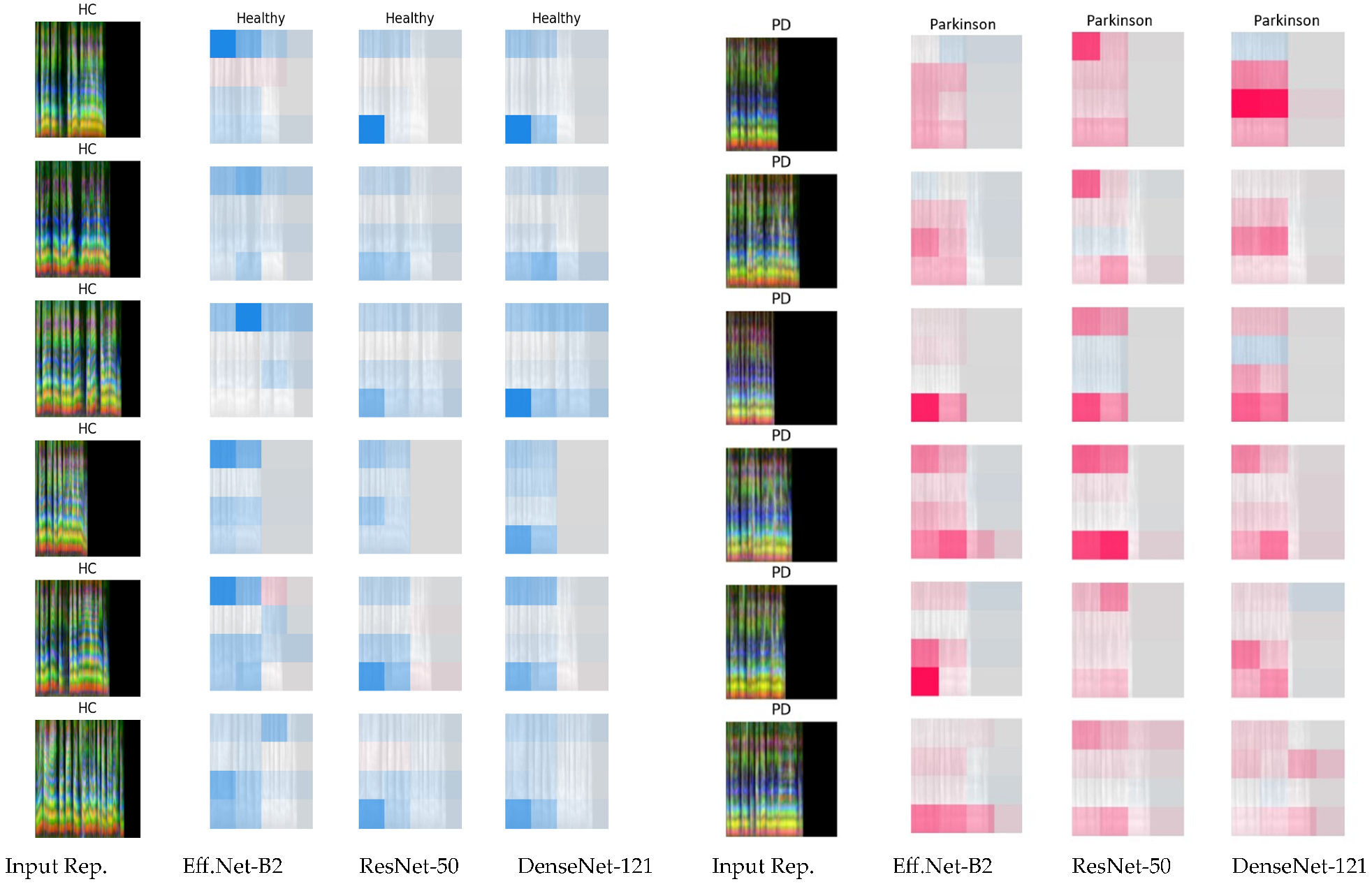 - Jeong, S.-M.; Kim, S.; Lee, E.C.; Kim, H.J. Exploring Spectrogram-Based Audio Classification for Parkinson’s Disease: A Study on Speech Classification and Qualitative Reliability Verification. Sensors 2024, 24, 4625. [Google Scholar] [CrossRef]