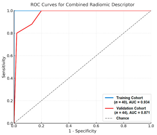 | Metric | Training Cohort (n = 40) | Validation Cohort (n = 44) |