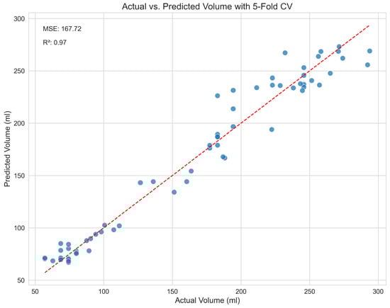 The cross-validation results for each model are compiled in Table 1, where the top-performing model is indicated in bold. The Stacking Regressor model was the best performer, achieving the lowest MSE of 167.72 and the highest score of 0.971. This strong performance immediately demonstrates its superior ability to capture the complex, non-linear relationships between the engineered features and the actual volume.