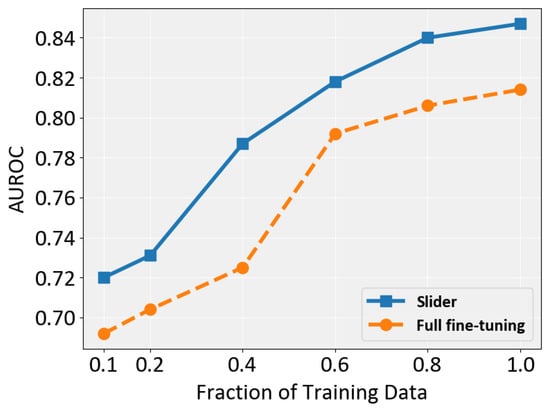 All PM extractor and Slider modules are implemented in the PyTorch framework (version 1.13.1) and trained on servers equipped with two NVIDIA RTX 6000 Ada Generation GPUs. For the PM extractor, we use EfficientNet-b4 [] as the classification backbone. Input images are resized to and normalized to the intensity range . Models are trained for 20 epochs with a batch size of 256 using weighted cross-entropy loss and the Adam optimizer [], with an initial learning rate of . Data augmentation is applied during training. For the Slider, we employ DINOv2 [] as the vision foundation model backbone, with the adapter dimension d set to 192, corresponding to a reduction factor . Input images are resized to . Models are trained for 80 epochs with a batch size of 8 using class-weighted cross-entropy loss (weight ratio 1:1.5), scanner mask normalization, and RGB windowing processing. Optimization is performed using the Adam optimizer, with an initial learning rate of , a cosine annealing learning rate scheduler, and a dropout rate of 0.3.