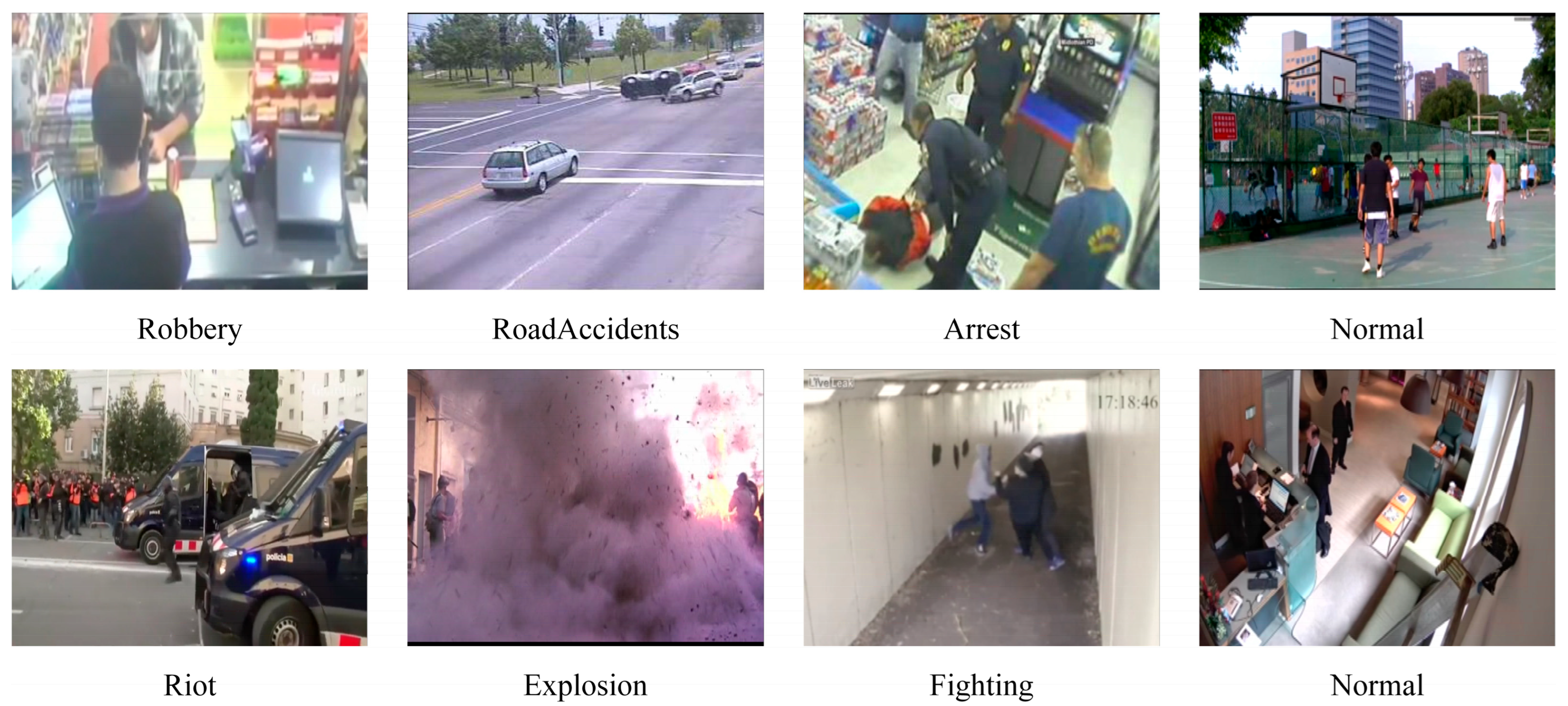 Figure 3. Example video frames from the UCF-Crime and XD-Violence datasets, including both abnormal and normal events.