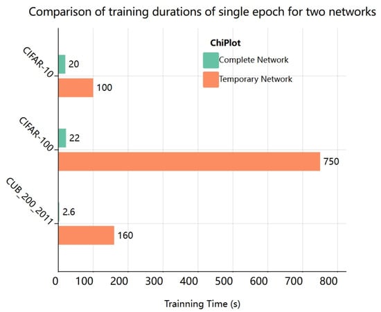 The temporary classification header has the structure of regular convolution and a fully linked layer, which is excessively simplistic in comparison to the capsule network. In image classification, utilizing this structure as the output component may drastically save training time. Figure 6 compares the training time needed for a single epoch on different datasets. On certain datasets, the overhead is reduced by more than 90%.