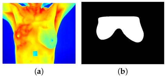 Figure 2. (a) Breast thermogram and (b) its corresponding binary mask.