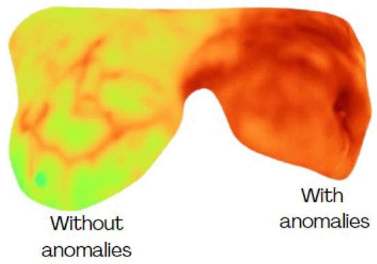 Over the past few decades, the use of infrared thermography in medical applications has been extensively studied. Thanks to advances in science and technology, the sensitivity of this technique has increased significantly, enabling it to detect subtle temperature variations [6]. The infrared radiation emitted by the body is captured through a thermal camera, allowing for the measurement of these thermal changes. Thus, thermography provides a fast, non-invasive, painless, and low-cost alternative [7,8,9]. Its use as a complementary diagnostic tool has been explored in various medical fields. In patients with rheumatic diseases, thermal changes were associated with areas of pain or swelling [10]. In the diagnosis and monitoring of peripheral vascular diseases that affect the peripheral circulatory system, it has been used to study varicose veins and diabetic foot [11]. In the context of respiratory diseases, thermography has proven helpful in identifying the intersegmental plane of the lungs, which facilitates pulmonary surgeries [12]. In oncology, it has been employed to detect thermal anomalies related to breast cancer, skin cancer, and metastasis of head and neck cancer, among others [13,14,15].