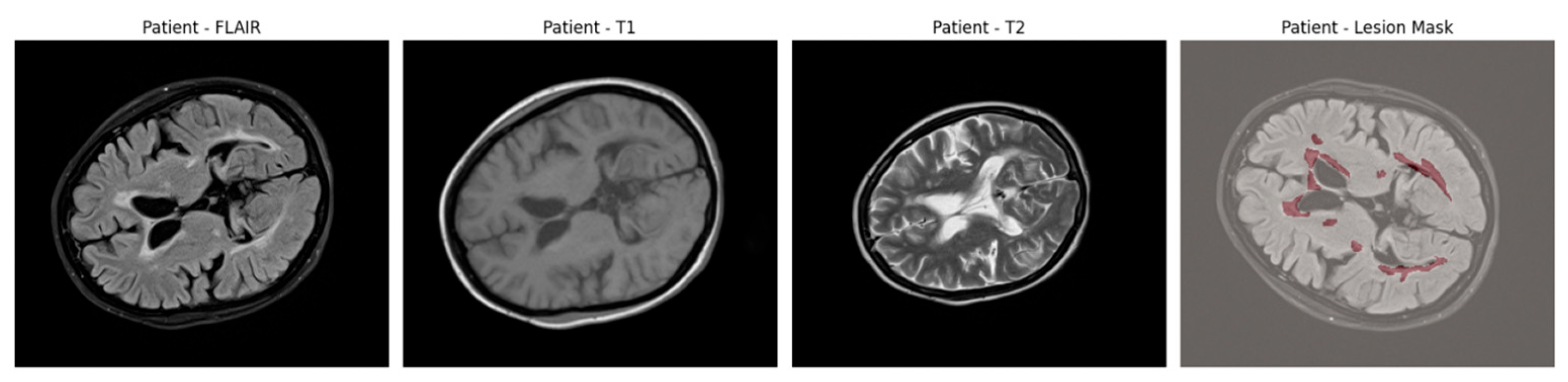 This study utilized the publicly available Brain MRI Dataset of multiple sclerosis with Consensus Manual Lesion Segmentation and Patient Meta Information, accessible via the Mendeley Data repository. The dataset comprises multi-sequence MRI scans and expert-annotated lesion masks for 60 patients diagnosed with multiple sclerosis (MS), along with detailed clinical metadata.