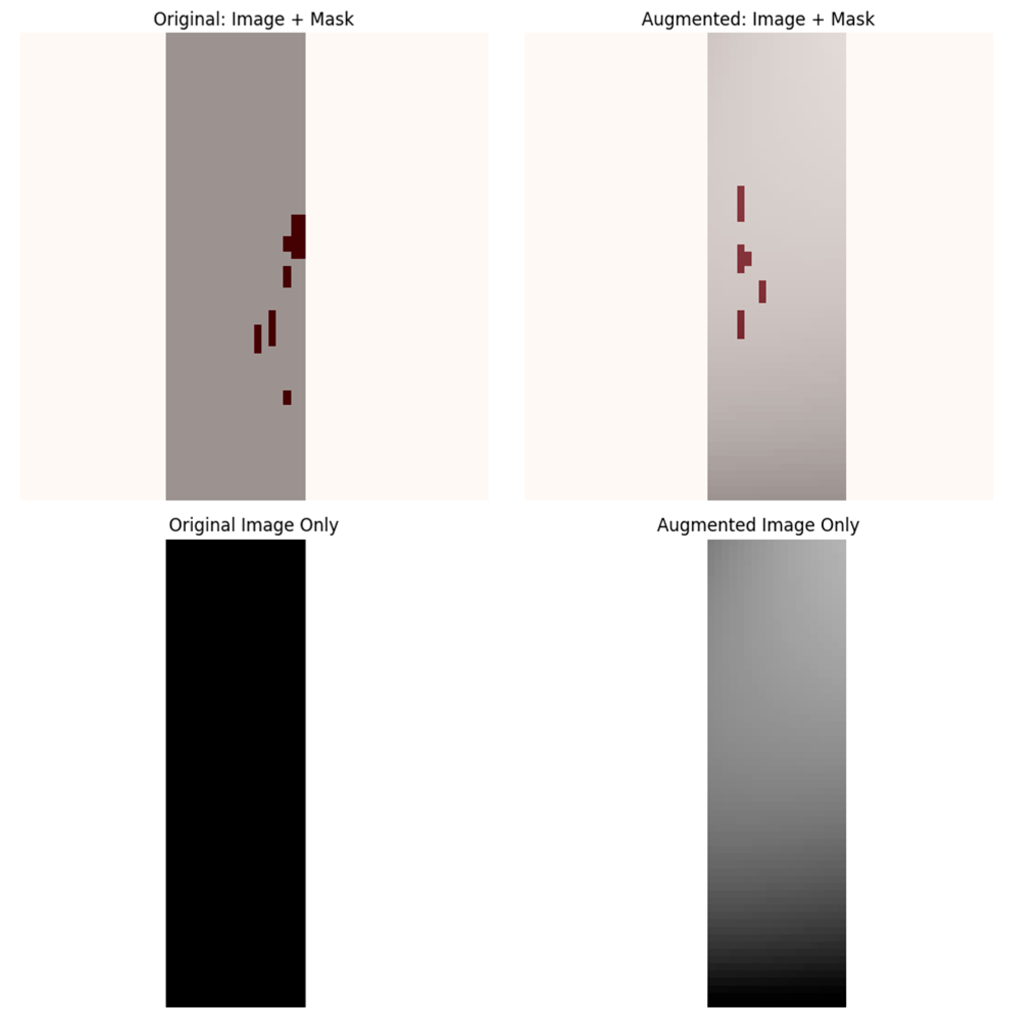 All augmentations were applied consistently across all input modalities and the corresponding lesion masks. No augmentations were applied during validation or testing, as shown in