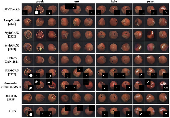 - Zhang, G.; Cui, K.; Hung, T.-Y.; Lu, S. Defect-GAN: High-fidelity defect synthesis for automated defect inspection. In Proceedings of the IEEE/CVF Winter Conference on Applications of Computer Vision (WACV), Waikoloa, HI, USA, 5–9 January 2021; pp. 2524–2534. [Google Scholar] [CrossRef]