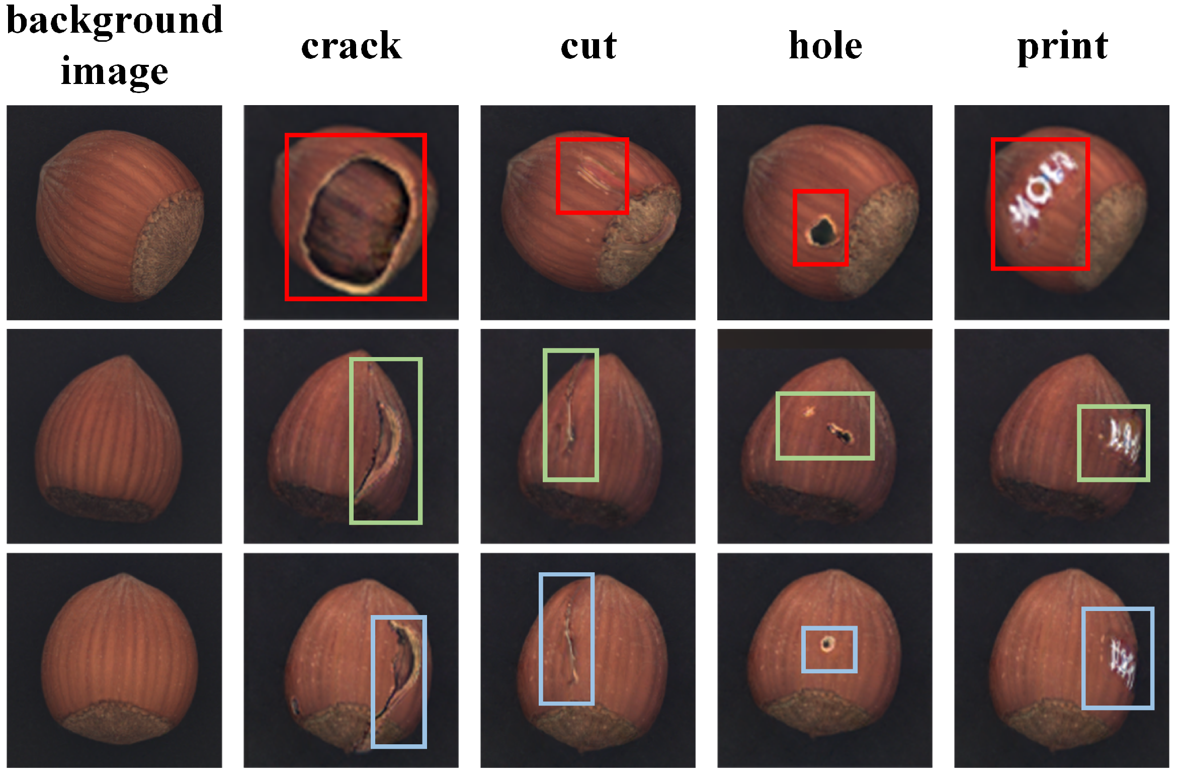 Hazelnut | Crack | Cut | Hole | |||||