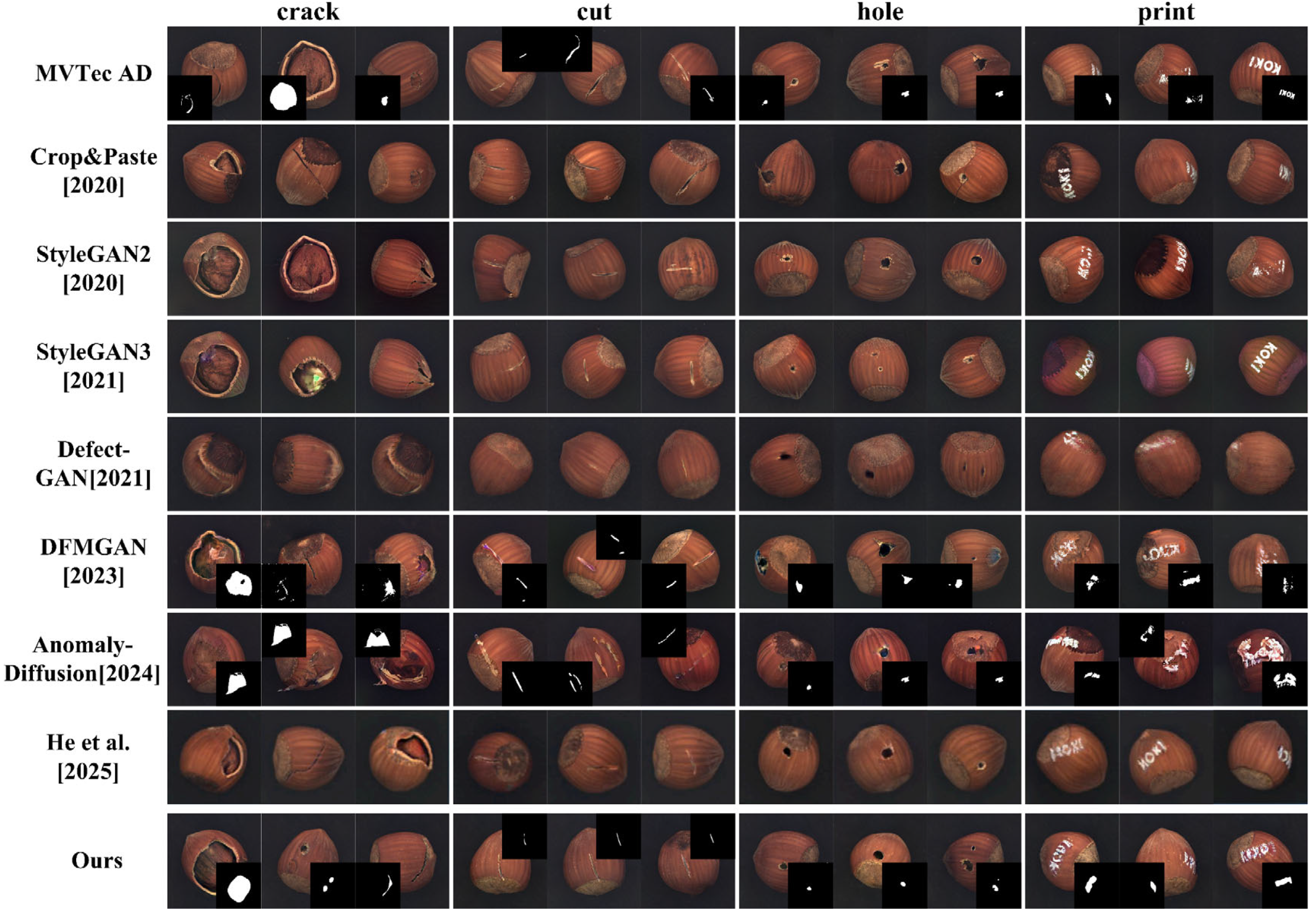 - Jin, Y.; Peng, J.; He, Q.; Hu, T.; Wu, J.; Chen, H.; Wang, H.; Zhu, W.; Chi, M.; Liu, J.; et al. Dual-Interrelated Diffusion Model for Few-Shot Anomaly Image Generation. In Proceedings of the IEEE/CVF Conference on Computer Vision and Pattern Recognition (CVPR), Denver, CO, USA, 3–7 June 2025; pp. 30420–30429. [Google Scholar] [CrossRef]