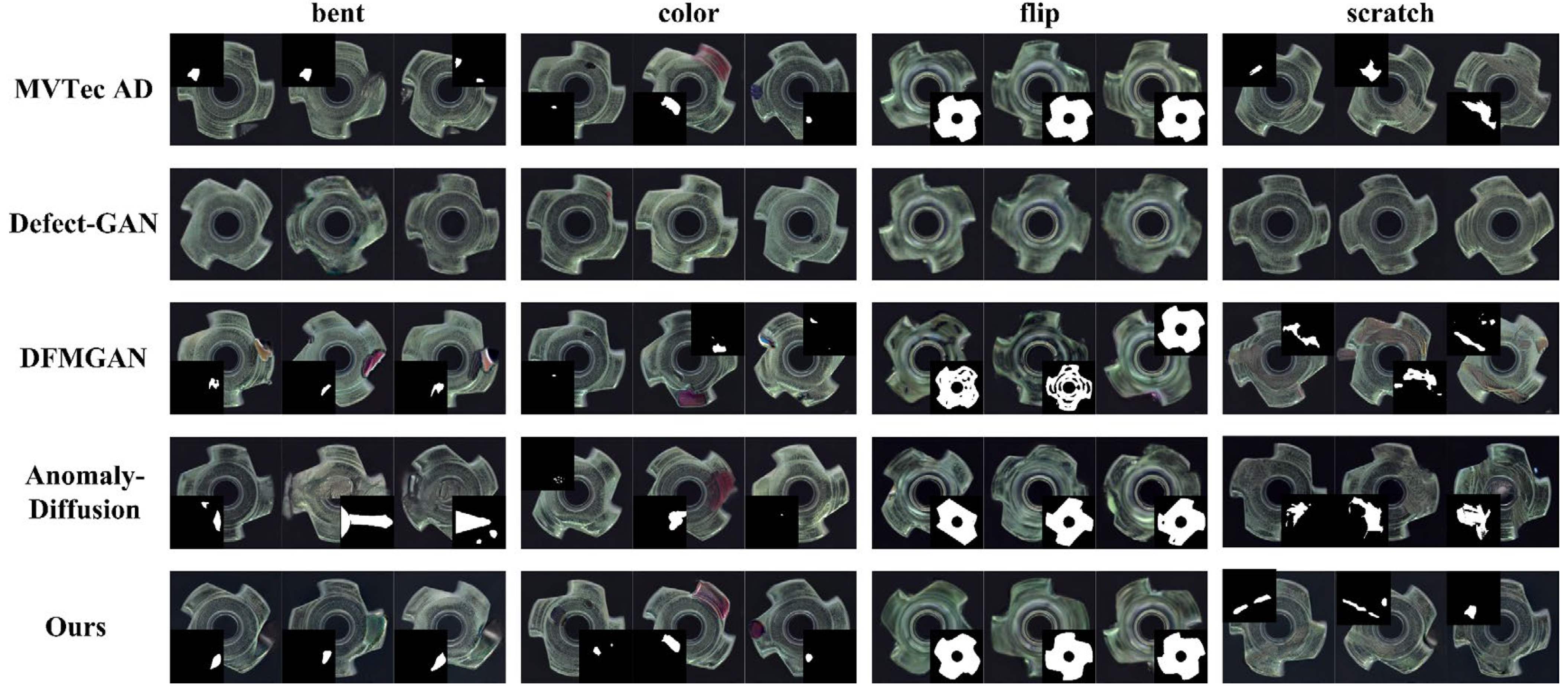 AnomalyDiffusion [19] | 32.59 | 0.3111 | 21.19 | 0.2753 | 29.40 | 0.2846 | 31.01 | 0.3139 |