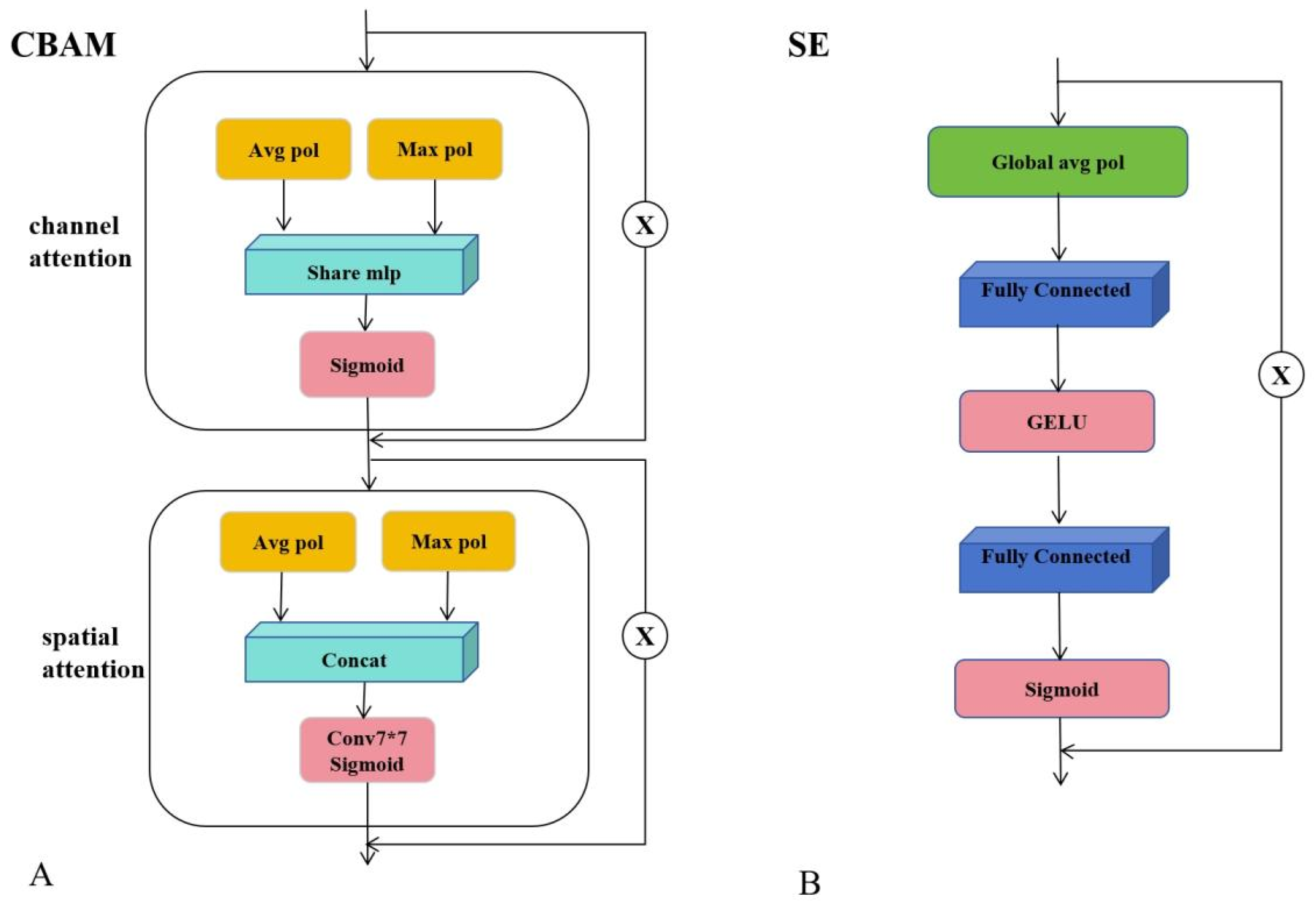 Meanwhile, the CBAM and SE attention modules dynamically emphasize distinctive ship features while suppressing irrelevant background information, thereby enhancing segmentation robustness across diverse ship morphologies. CBAM sequentially applies channel and spatial attention mechanisms, enabling adaptive focus on salient regions while attenuating uninformative features. It is particularly effective in capturing fine-grained object boundaries and positional cues. Based on extensive empirical evaluations, CBAM is applied three times before the SPPF module to enhance spatially aware feature refinement and further improve segmentation accuracy.
