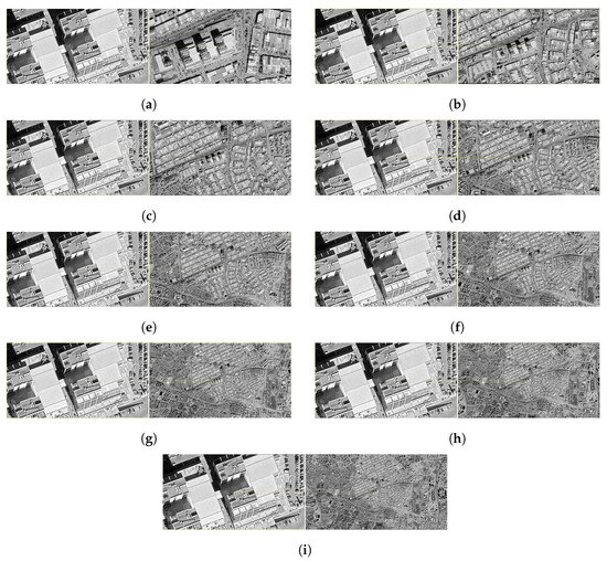 A similar process was applied to a total of ten satellite images representing different altitudes, starting at 500 m and increasing at intervals of 500 m up to 5000 m. These images were also exported in JPEG format via the Google Earth Pro v7.3.6.10441 application and georeferencing was performed using the same transformation parameters (Helmert transform, EPSG:4326, Lanczos interpolation) for each. Thus, the comparability of the performance of the matching algorithms on images with different resolutions is ensured.
