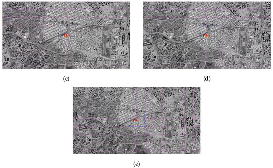 Some dilution was observed in pairings. Although the placement of the drone image on the satellite still makes sense, there have been slight deviations in the margins. Matching accuracy is calculated as 81%. The position error is just over 1 m. Although this value remains within the operability limits of the system, it indicates that the sensitivity is decreasing (Figure 6e,f).