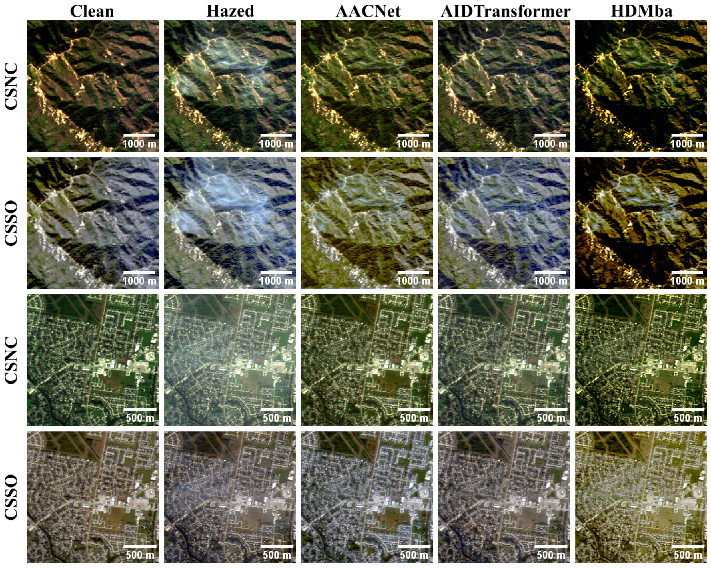 Examples of RGB dehazing results obtained using the CSNC and CSSO RGB synthesis methods.