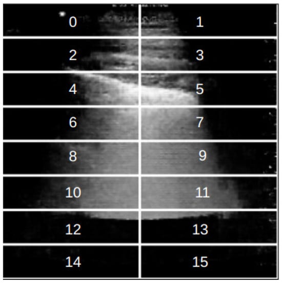 - each image was divided into non-overlapping patches of size 56 × 14 pixels, as shown in Figure 8;