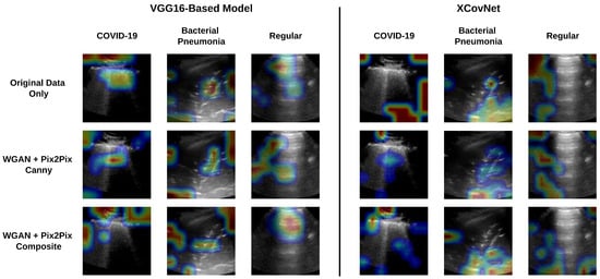 Classifier performance was evaluated using accuracy, sensitivity, and specificity, which are the most commonly reported measures in similar studies [9,15]. Since it is also essential to check whether or not the models are focusing on clinically known artifacts for the classification task, Gradient-weighted Class Activation Mapping (Grad-CAM) was used to evaluate image regions that caused class activity [19,72]. However, there remains considerable debate on how to properly measure the performance of generative models in terms of the variety and quality of the generated data [73]. The present work adopted an evaluation method inspired by [74], employing the Kullback–Leiber (KL) divergence along with the L1 and L2 norms.