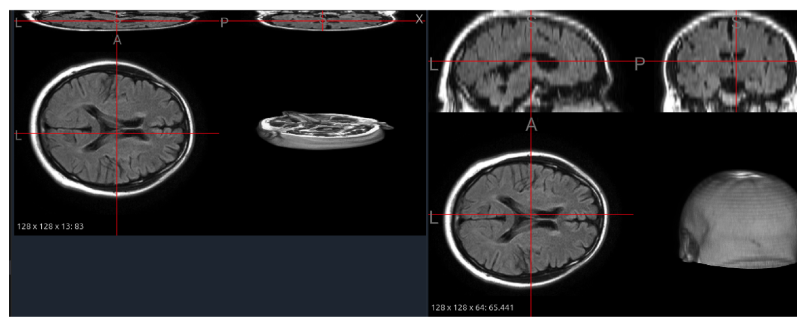 The orientation of MRI volumes defines how the anatomical axes of the brain are mapped to the voxel coordinate system. Each MRI scan stores its orientation using a three-letter code (e.g., RAS, LAS, LPS), which specifies the direction of the x, y, and z axes relative to the patient’s anatomy. While orientation may appear as a technical metadata field, it has a direct and critical influence on the learning behavior of foundation models. When images are stored in inconsistent orientations across datasets, identical brain structures appear in different spatial locations or mirrored configurations. This leads to misalignment in anatomical correspondences, causing the model to learn orientation-specific patterns instead of generalizable anatomical features. Therefore, harmonizing orientation is essential for foundation models to learn consistent spatial representations that can generalize across diverse datasets.
