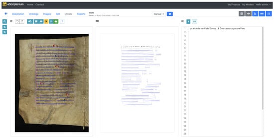 The present work is developed in the context of the iForal project [4,5], which has the objective of developing an electronic critical edition and glossary of Portuguese royal charters to facilitate research in the fields of history and linguistics. To achieve this objective, it is essential to obtain transcriptions of the texts contained in these manuscripts. The primary objective of this work is to develop a tool capable of automatically transcribing the textual content of digitized images of manuscripts, as illustrated in Figure 1. The creation of such a tool will facilitate the transcription process, reducing the time and effort required of paleographers. This work is concerned with Automatic Text Recognition (ATR), which encompasses three principal elements of the transcription process: layout recognition, text segmentation, and text recognition. The focus is on Portuguese medieval documents.