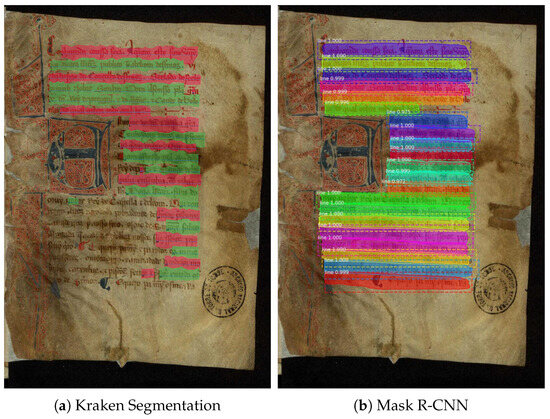 - Droby, A.; Barakat, B.K.; Alaasam, R.; Madi, B.; Rabaev, I.; El-Sana, J. Text Line Extraction in Historical Documents Using Mask R-CNN. Signals 2022, 3, 535–549. [Google Scholar] [CrossRef]