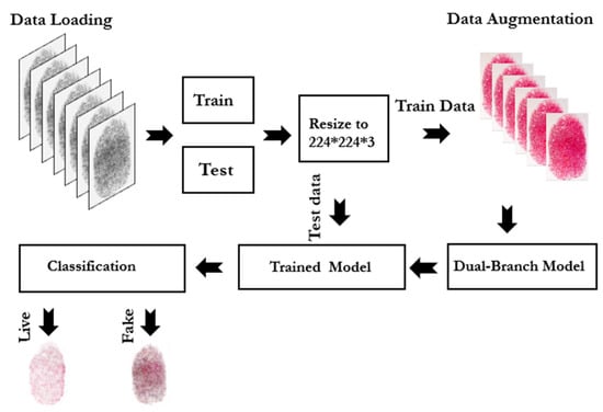 Architecture of the dual-branch proposed model for fingerprint liveness detection.