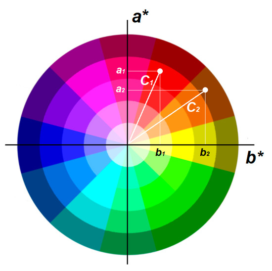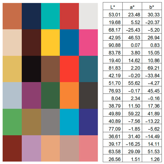 CIE L*a*b* is a device-independent color space, as opposed to, for example, RGB and CMYK. RGB (Red, Green, Blue) is an additive model of a device-dependent color space, commonly used for digital displays, where colors are created by combining varying intensities of red, green, and blue light [33]. CMYK (Cyan, Magenta, Yellow, Key/Black) is a subtractive color model used in color printing, where colors are produced by subtracting light using ink, and it works by mixing various percentages of cyan, magenta, yellow, and black inks [33]. This color space is device-dependent too. The main difference between these three color spaces lies in their purpose for consistent color reproduction across different devices and environments.