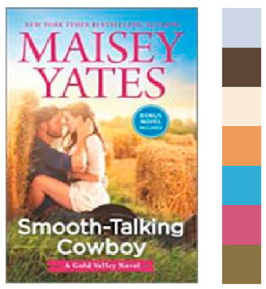 To explore the possibility of identifying the most commonly used color palettes for books of a certain genre, a dataset with romance book covers [43] was used. This dataset was gathered within twelve years 2011–2023 and contains 1434 cover images, author names and titles, and brief book annotations. The images are photographs of book covers sold on various online services in the romance novel genre. The author of the dataset examined, for example, aspects such as the presence and the number of partially clothed or unclothed people on the cover, and whether the cover illustrations are more hand-drawn or photorealistic. In particular, the author provides a diagram of the use of images of partially or fully unclothed people on romantic novel covers. The diagram shows that over time, such images on covers are becoming fewer, which leads to a reduction in skin tone representation in design. Another diagram by the author demonstrates that in recent years, the number of photorealistic illustrations in the design of romance covers has significantly decreased, and the vast majority of covers are now hand-drawn.