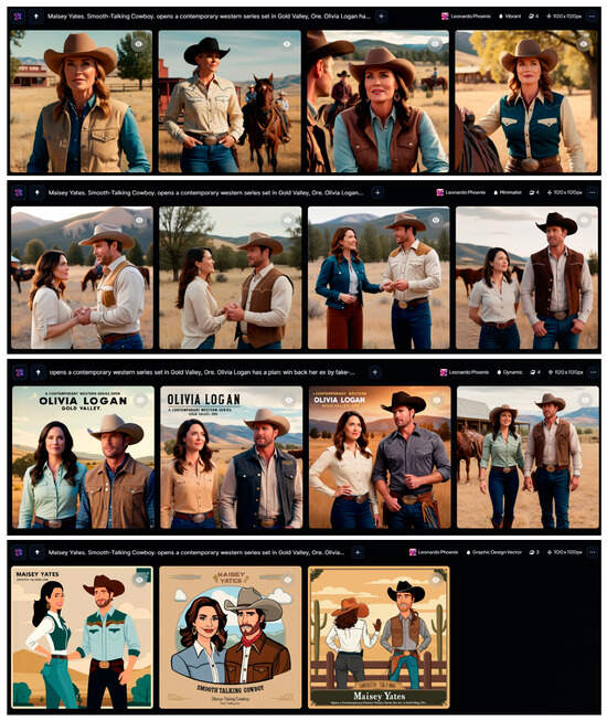 For our task, the Leonardo Phoenix platform turned out to be the most suitable. Styles were researched: Vibrant, Minimalist, Dynamic, and Graphic Design Vector. Results for queries are shown in Figure 10. The choice of Graphic Design Vector is explained by the fact that illustrations for printing are often prepared not in raster but in vector editors, which ensures higher image quality. In addition, [47] notes that there is a tendency to increase the number of hand-drawn rather than photorealistic covers.