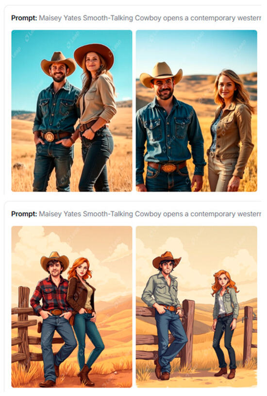 The role of book cover design has become a vital factor in determining a book’s commercial success. Covers act as the first point of contact with potential readers, influencing their decision to explore, purchase, or bypass a book entirely [4,5,6]. Book cover design is no longer just a decorative feature or an afterthought in the book production process. It has become a vital part of marketing, storytelling, and reader engagement. Whether for printed books or digital versions, the importance of book cover design continues to grow, reflecting changing trends in technology, art, and consumer behavior. Nowadays, generative artificial intelligence (GAI) tools are actively included in the design creation process. A 2024 report from Design Intelligence reveals that 60% of publishers have incorporated AI tools into various stages of book production, with 35% using them specifically for cover design. In addition, a survey by BookTech showed that 70% of self-published authors experimented with AI-powered design tools in 2023, a significant increase from 45% in 2020 [7].
