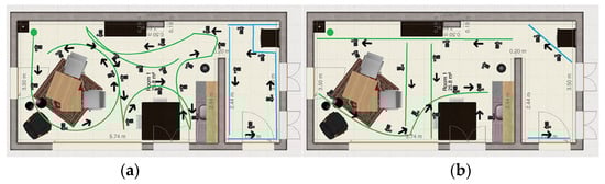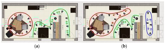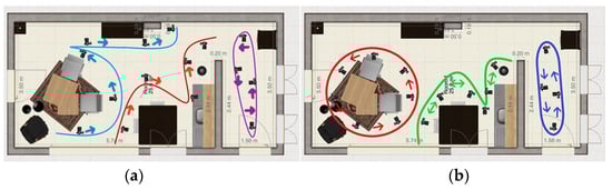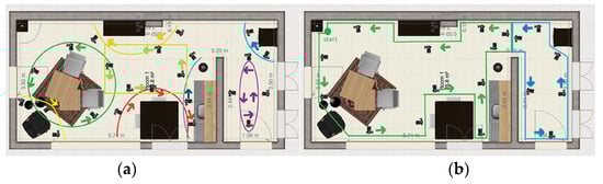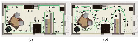 (a) Method 1: Following the contours of the whole environment, (b) Method 2: Circle around the main objects in the rooms in one path.