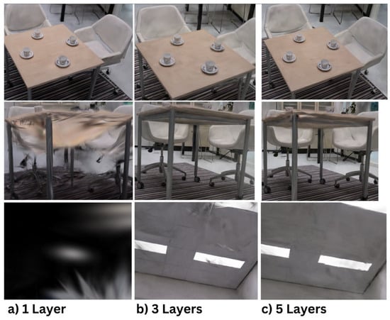 In contrast, Gaussian Splatting represents the scene as a discrete set of 3D Gaussian functions (‘splats’) [], each carrying spatial position, opacity, and shape properties. Unlike NeRF’s volumetric points, which require extensive neural computation to render, splats are directly projected onto the image plane, allowing for rasterization-based rendering that is significantly faster and more efficient. Furthermore, the overlapping and blending nature of Gaussian splats helps to fill in missed spots and smooth out inconsistencies in areas with sparse input data, reducing gaps that might otherwise appear in the reconstruction.