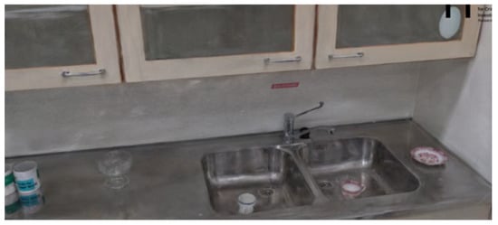 Methods 8 and 10 are identical, with the exception that in Method 10, the area around the coffee table is extended to include the side of the black cabinet, resulting in a complete reconstruction of the cabinet. Figure 14 and Figure 15 show screenshots of the cabinet, kitchen, and coffee table, all of which are captured detailed. Some items even have readable text. However, there is still some noise in the reconstructions, although this can be removed with further processing.