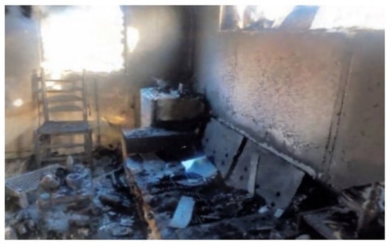 Expanding the scope of future work, we also plan to explore the application of these methods in diverse indoor and outdoor environments. While this study focused on simulated indoor scenarios for ease of replication, real-world environments such as abandoned buildings, train stations, or underground tunnels and outdoor areas present unique challenges, including variable lighting and complex spatial layouts []. For instance, outdoor environments may introduce domain shift due to differences in lighting conditions, object textures, and spatial dimensions, potentially affecting the performance of Gaussian Splatting and NeRF algorithms. Addressing these challenges through adaptive techniques, such as fine-tuning algorithms for specific domains or integrating more generalizable approaches, would significantly enhance the robustness of these methods. As an example, we are currently experimenting with 3D reconstructions of arson scenarios, which require capturing detailed and accurate representations of fire-damaged structures and debris. Initial work with cases of arson in both indoor and outdoor locations, as shown in Figure 16, demonstrates the need to test the adaptability and scalability of the proposed methods under diverse conditions. These efforts aim to ensure that the methods remain effective across varying scenarios, thereby expanding their utility in real-world forensic applications.