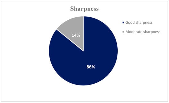 Subjective image quality assessment scores: 86% of the X-ray images were evaluated as having good sharpness, while 14% were assessed as having moderate sharpness.