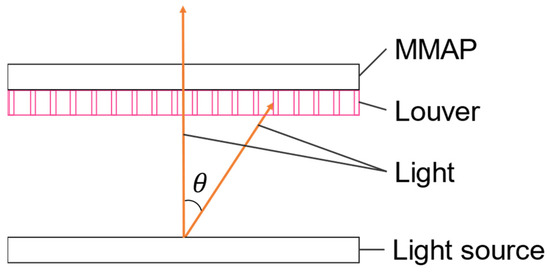 Louvers block light rays outside of a certain range and transmit the light rays within that range. Ghosts can be removed by limiting the angle of incidence to the MMAP to 30° or less; however, this also removes the light rays that form the aerial image, thus limiting the viewing angle of the aerial image and reducing its brightness depending on the film [7,13].