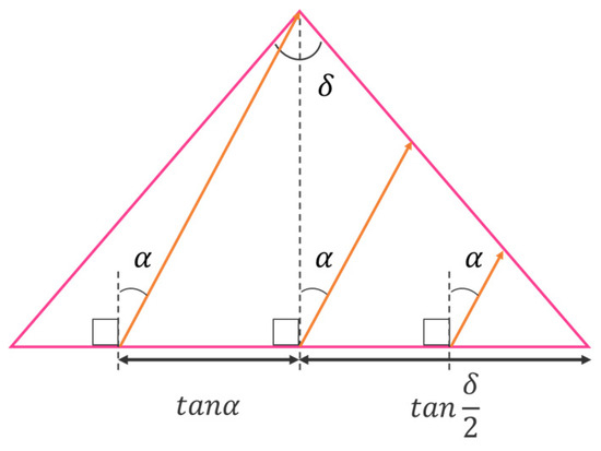 Figure 6 shows rays of light incident on the right slope of the prism. As shown in Figure 6, the rays incident on each slope fall within a certain range. Therefore, the proportion of rays entering each slope is shown in Equation (14).