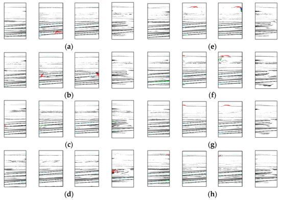 Example of detection. Result for (a) chip1, (b) chip2, (c) chip3, (d) chip 4, (e) chip5, (f) chip6, (g) chip7, (h) chip8.