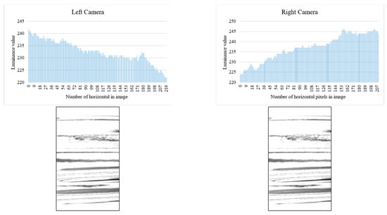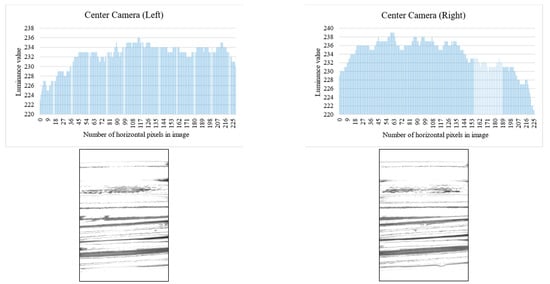 Relationship between inspection image and luminance value (left and right camera).