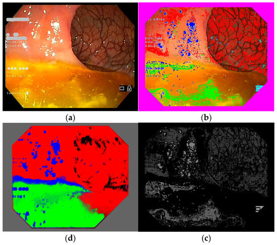 Another example of a colonoscopy frame in the training database. (a–d) Explanation is the same as Figure 4.