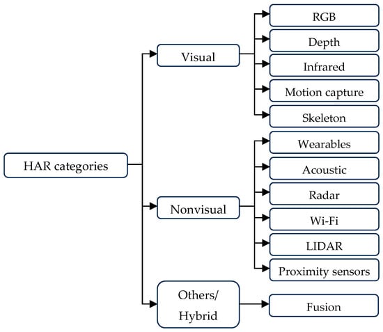 Categories of HAR based on sensor modalities.