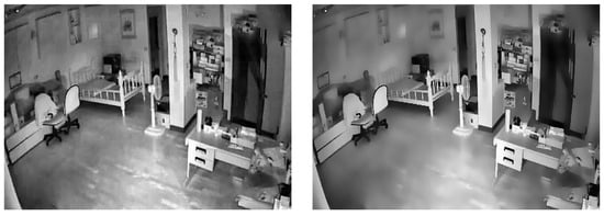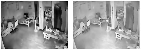 After an earthquake occurs, abnormal images are produced due to poor image quality, camera shake, human movement, and other factors. In cases where heavy furniture is displaced, lighting is damaged, and structural components are affected, poor-quality images are often captured. This kind of image is not suitable for the analysis of the target: the degree of response. Camera shake causes pixel displacement throughout the image, which results in the false detection of the movement of all objects and even the background. This greatly affects the accuracy of seismic intensity assessments. There is often human movement in images taken before and after an earthquake, which is easy to misidentify as the target movement during the target detection, resulting in the incorrect analysis of the target movement before and after the earthquake. These anomalies need to be pre-processed before the motion of objects in the room can be analyzed.