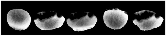 To evaluate the performance of our eyelash removal method, we applied it to IR images from five different corneas, as shown in Figure 3. The variation in the outer contours is due to differences in individual eye shapes. The primary purpose of this figure is to showcase the successful removal of eyelashes, which appear as black regions, rather than to compare corneal shapes. For better interpretability, we note that in these infrared images, darker areas indicate cooler temperatures, while brighter areas correspond to warmer regions.