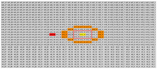 Considering that a sliding window of 27 × 27 pixels is available at each clock cycle, as illustrated in Figure 2, the following operations are applied.